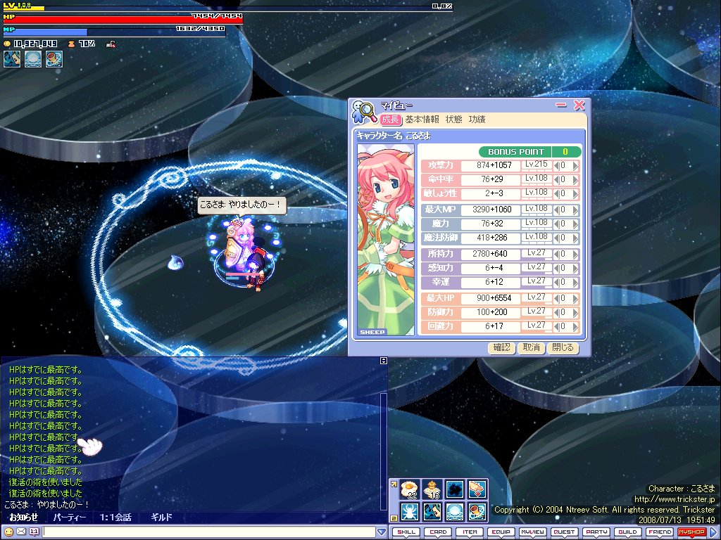 まあなんだかんだで、Lv100達成ですv記念(?)にステータスをば。
